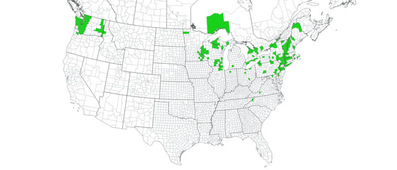 Wild Chervil distribution in North American © EDDMaps