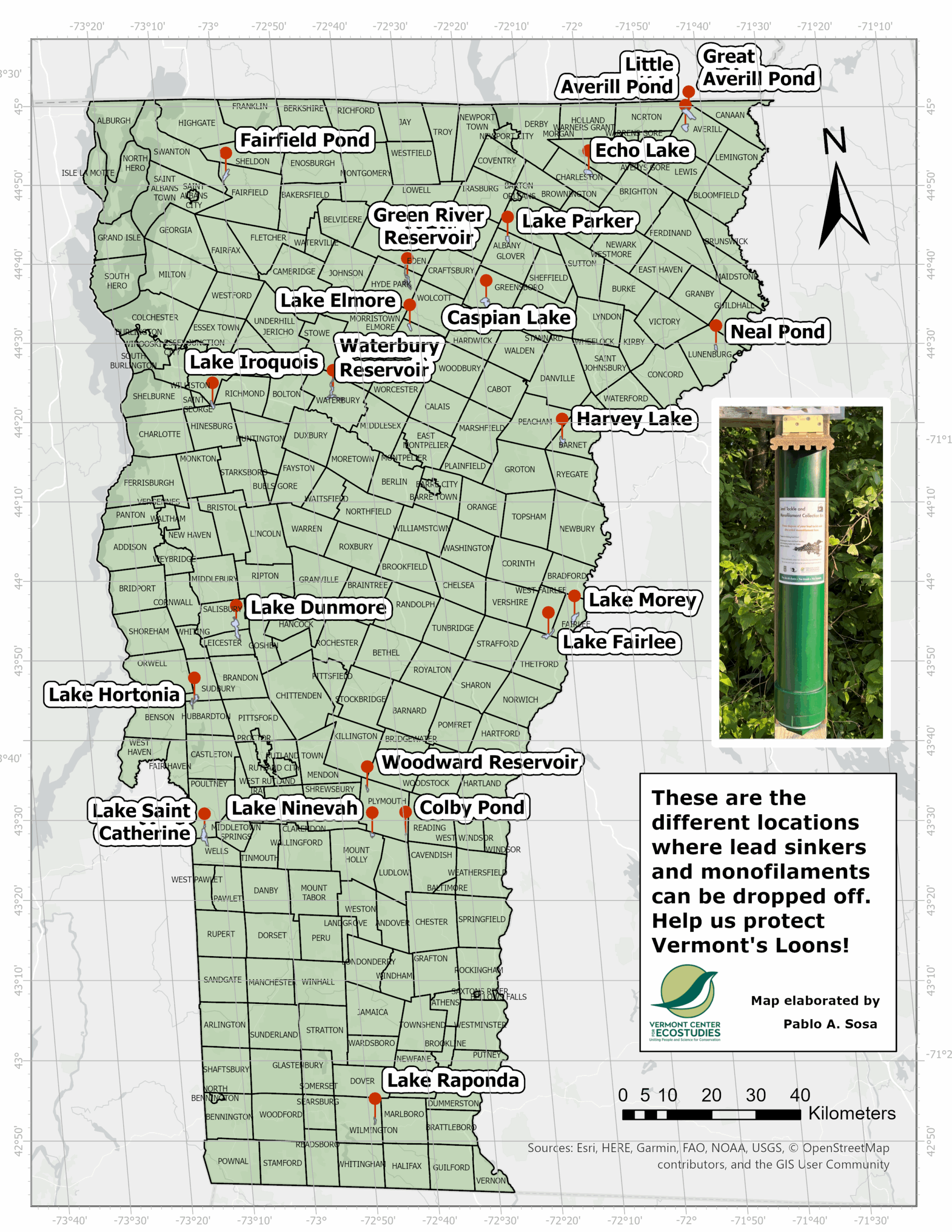 VCE has been working with lake associations and the Vermont Fish and Wildlife Department to install collection tubes across the state where you can dispose of your lead tackle. Encourage your family, friends, and local tackle shops to use and carry non-lead tackle as well.