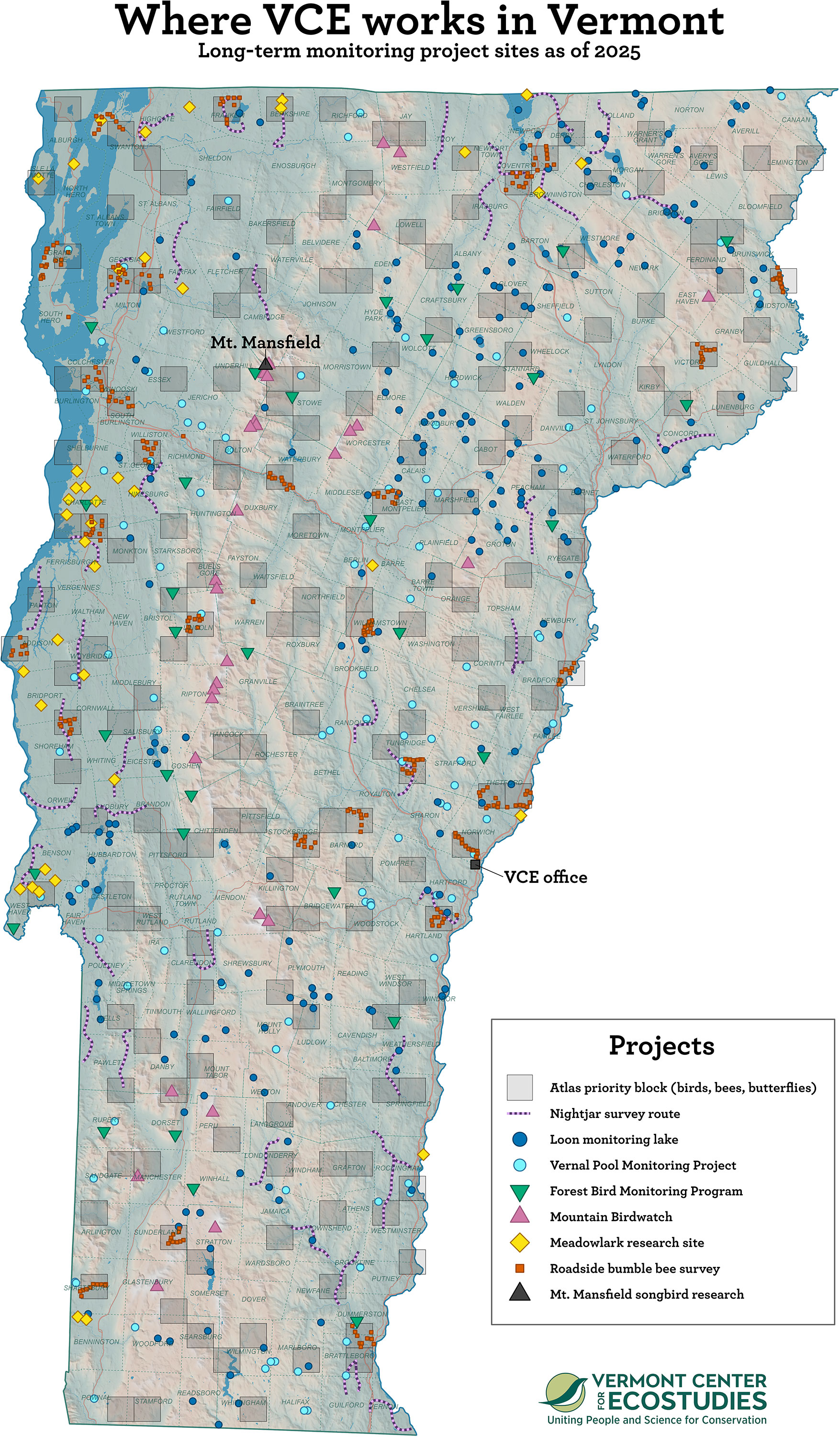 Check out our projects, learn about the results of this research, find volunteer opportunities near you, or partner with VCE biologists on your next event or project.
