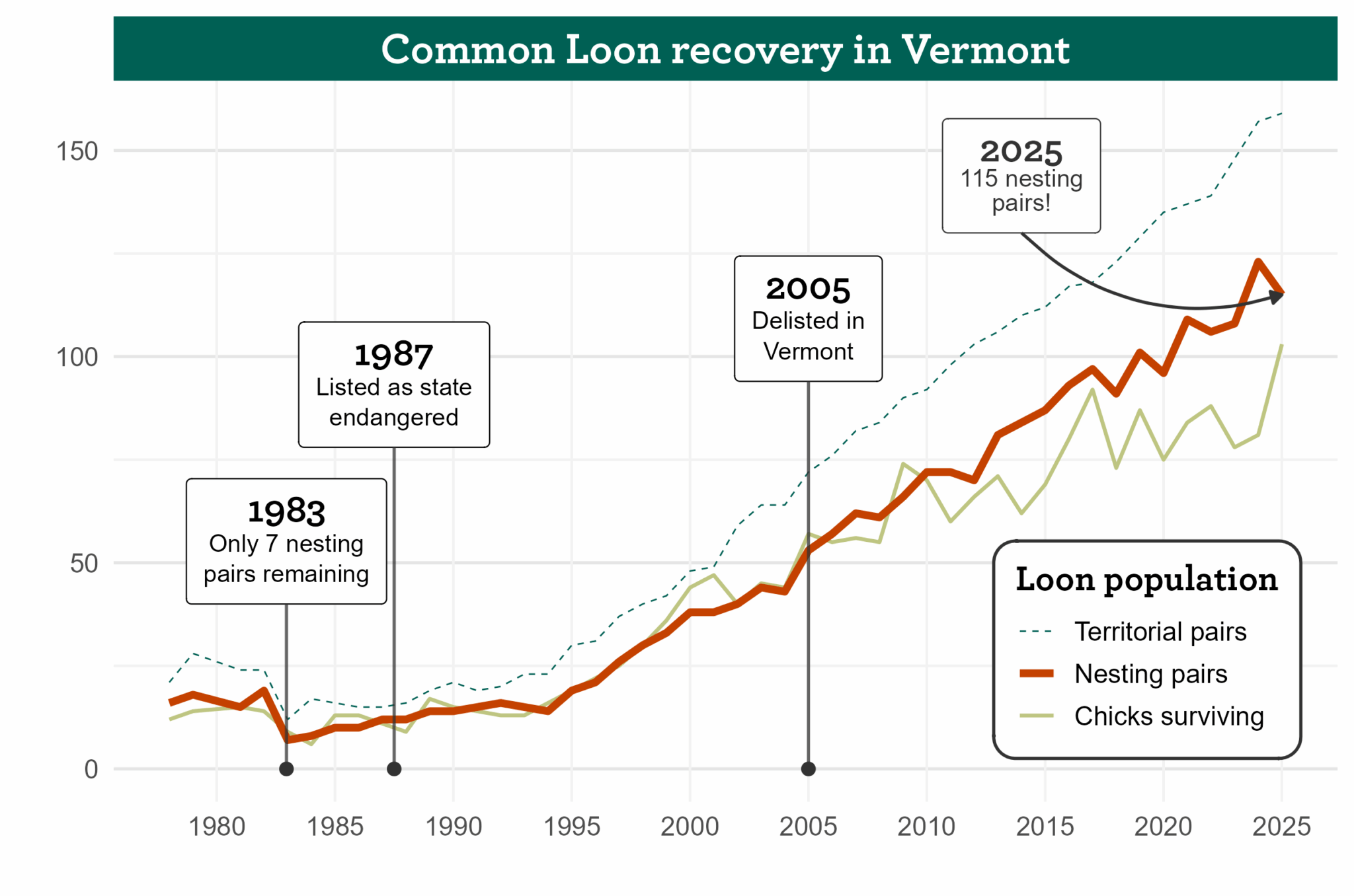 Thank you to this community of big-hearted helpers—volunteers, donors, and everyone who contributed support—together we made 2025 another banner year for Vermont loons.