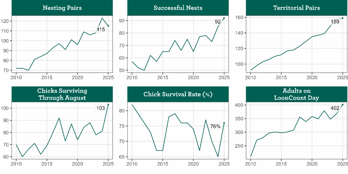 With this success, as we look toward 2026, we will reassess our deployment of rafts and whether more loons should be encouraged to nest naturally. We will also continue to encourage anglers to fish lead-free and lakeside owners to rewild their shorelines. A healthy lake for loons is a healthy lake for eagles, otters, fish—and all the humans—who enjoy them!