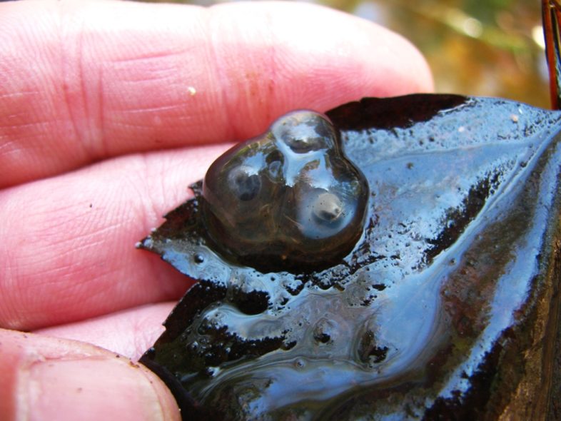 Blue-spotted Salamanders lay individual eggs or small clusters usually on the pool bottom or attached to leaves. Photo: Steve Faccio