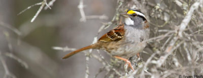 With a song familiar to anyone who has spent time in the north woods during summer, White-throated Sparrow is also a common winter visitor at bird feeders from Florida to southern New England. Presenting in two distinct color forms, one with a tan-striped head and the other crowned in white and black, White-throated Sparrows have long fascinated evolutionary biologists and natural historians alike. Learn more »