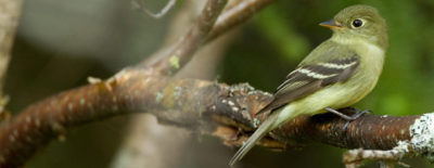 This elusive denizen of muskeg and boggy boreal forests spends a few short months in our region before retiring to its winter home in Mexico or Central America. Its reclusive nature and preference for thick, damp forests makes it difficult to study. As a consequence, we still know very little about the habitats of the Yellow-bellied Flycatcher. Learn more »