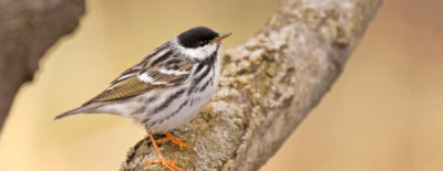 In the breeding season the faint song of Blackpoll Warbler can be heard throughout montane and boreal evergreen forests. Each fall, they gather on the North Atlantic coast before making a non-stop flight to islands in the Caribbean and then on to winter grounds in South America. Our work has shown that they may fly 40 to 70 hours non-stop over the open waters of the Atlantic Ocean on migration. Learn more »